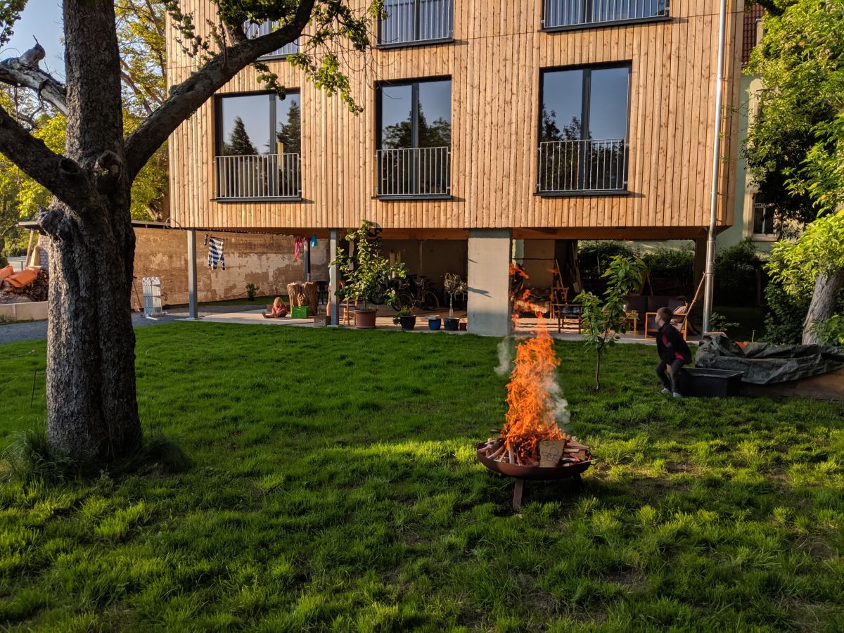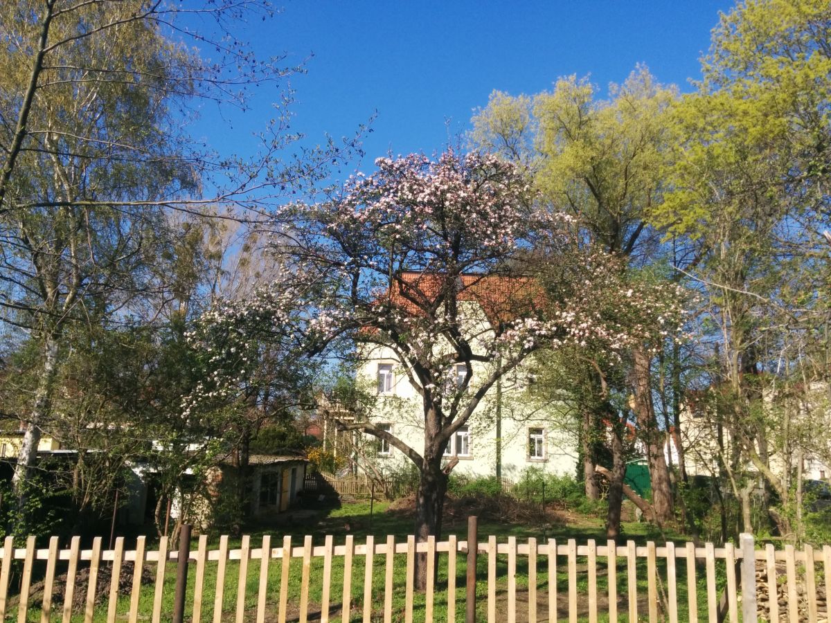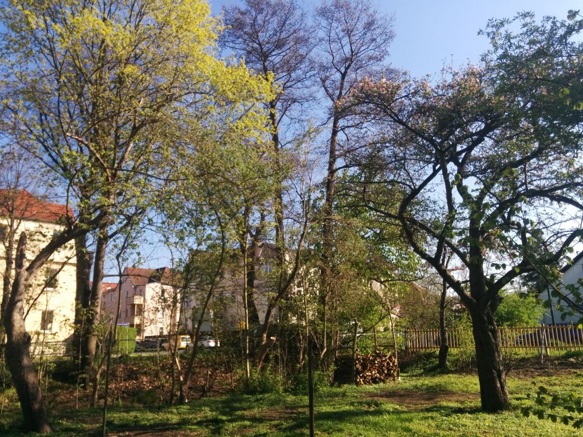 Die Irren und Wirren des Lebens führten uns zu einem Grundstück im ehemaligen Mockritzer Sumpfgebiet. Der Nöthnitzbach fließt auf dem Grundstück und mündet nur wenige Meter entfernt in den Kaitzbach. Der Nöthnitzbach hat auf dem Grundstück einige Meter ohne künstliche Uferbefestigung und ist von Bäumen umgeben. Angrenzend stehen ein paar alte Obstbäume. Über die Jahre zugewachsen wirkten diese wenigen Quadratmeter wie ein kleiner Urwald in der Stadt. Verstärkt wird dieser Effekt durch die umliegende Bebauung, welche mit einem Anheben des Geländeniveaus einher ging, sodass das Grundstück nicht nur wie eine kleine, grüne Mulde wirkt, sondern auch von der Wasserbehörde als Retentionsfläche unter Schutz gestellt wurde.