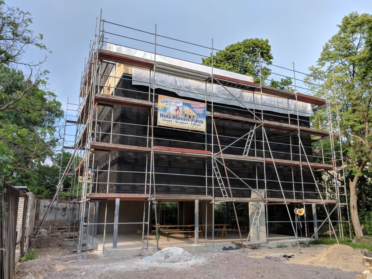 Unter dem Aspekt der ökologischen Baustoffe viel die Wahl schnell auf ein Holzhaus, worunter sich aus Sicht der Bauherrenschaft das MHM-System (MassivHolzMauer) hervor getan hat. Es bietet vielerlei Vorteile und hat nicht zuletzt bei größer angelegten Vergleichen gut abgeschnitten 1) .